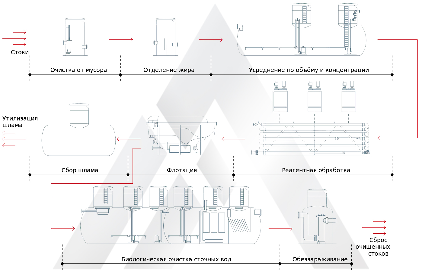 Схема очистки промышленных сточных вод